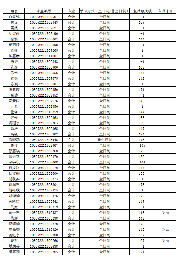 会计学硕士复试成绩