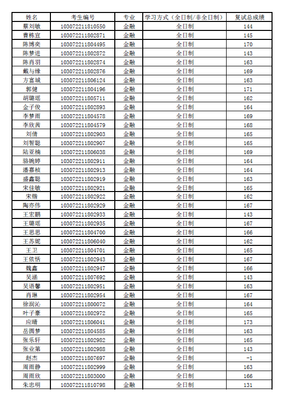 金融学硕士复试成绩