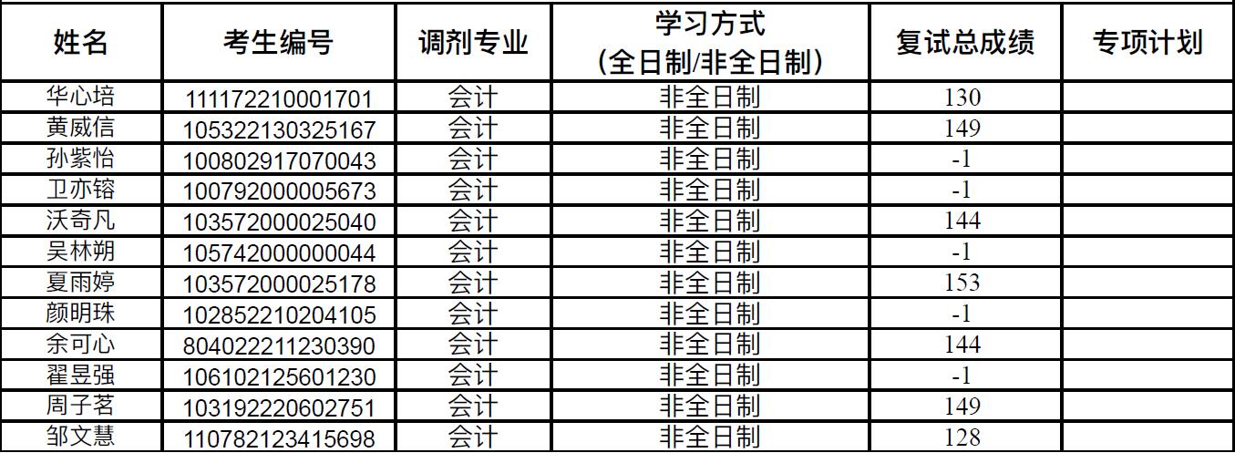 Av大平台 2022年MPAcc非全日制硕士研究生调剂复试成绩公示(二次调剂)