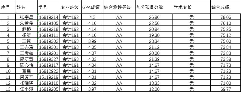 根据《Av大平台 关于2023年推荐优秀应届本科毕业生免试攻读研究生工作的通知》的要求,经学生自主申请,学院审核,现将申请学生成绩公示如下: