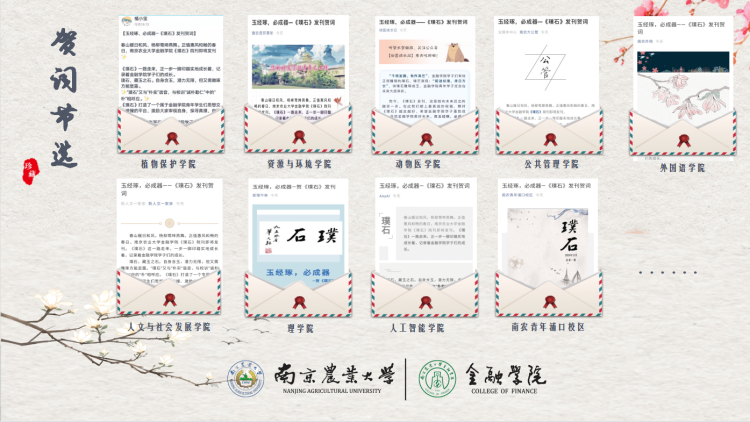 首先,顾焕章教授致发刊词,他表示《璞石》与南农校训“诚朴勤仁”相呼应,代表了南农人的美好品质和无限潜力。同时,顾教授也分享了自己学生时代读书与创作的经历,鼓励同学们通过《璞石》耕云播雨,通过在南农的切磋琢磨,完成从“璞石”到“美玉”的蝶变。