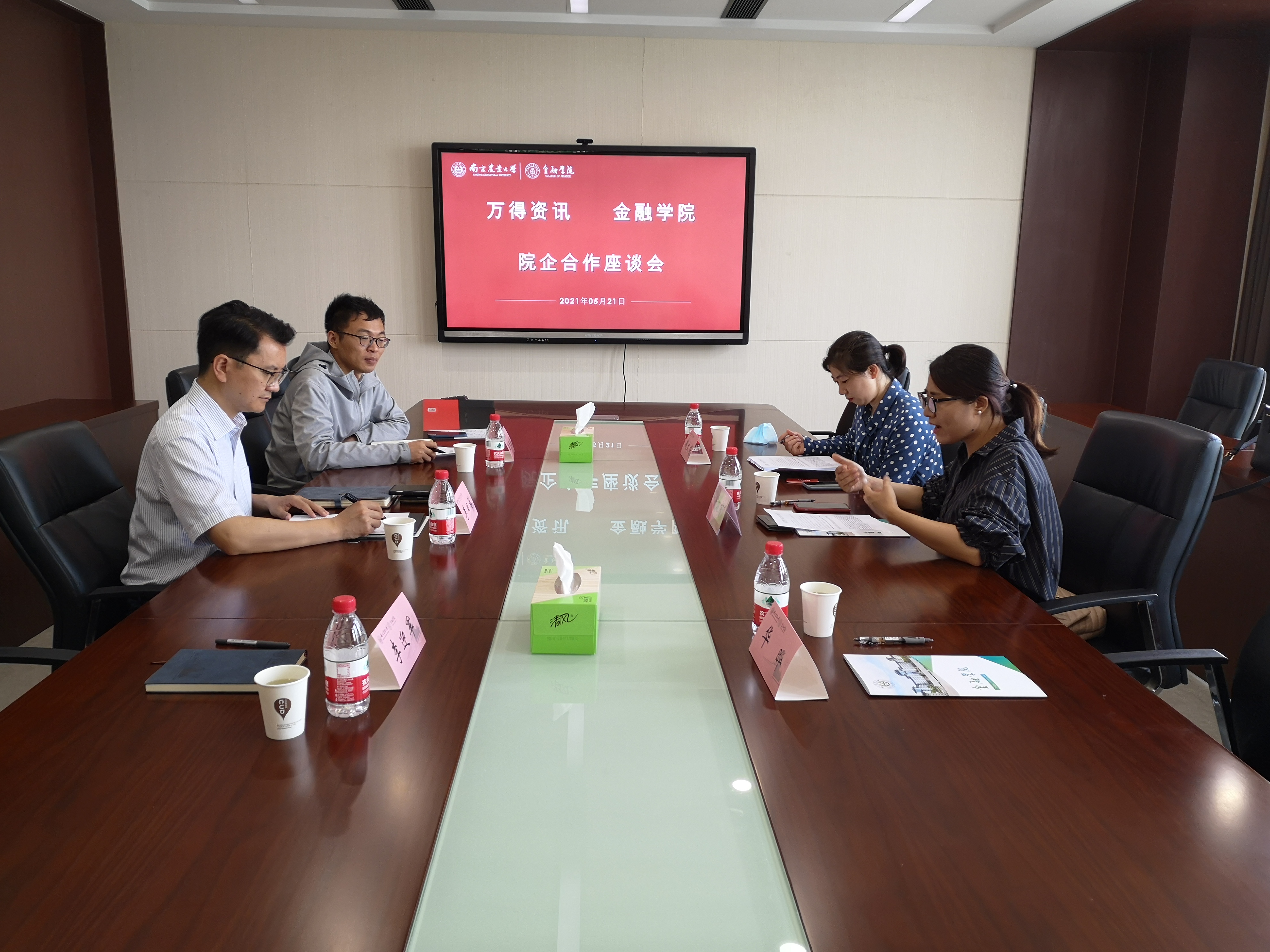 5月21日上午9点半,Av大平台 与万得资讯就共促毕业生就业工作开展座谈交流。万得资讯华东区销售负责人火琬清、江苏省销售总监钱文婷一行到访Av大平台 ,Av大平台 党委副书记李日葵,辅导员陆佳俊、李迎军参加座谈。