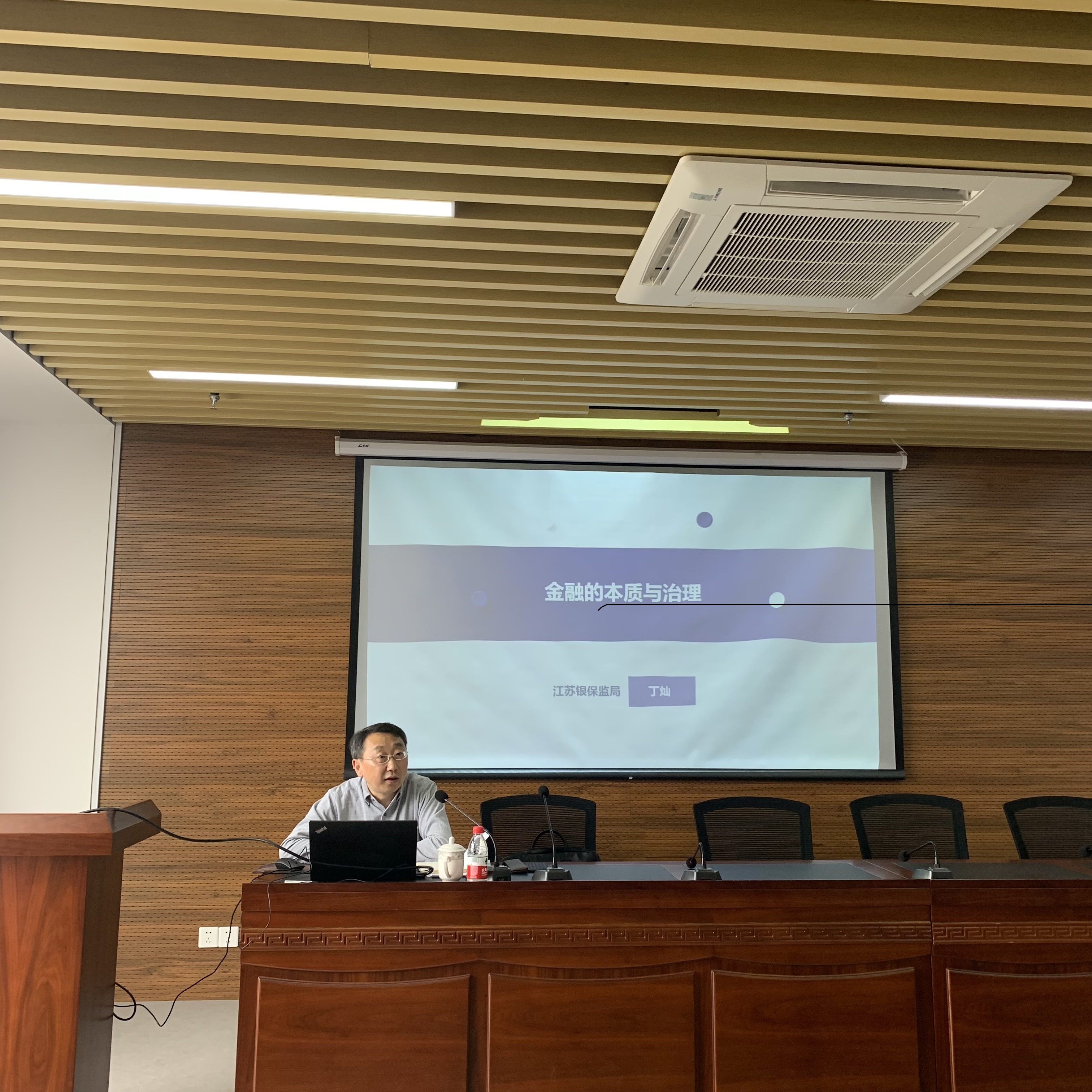江苏省银保监局党委委员、副局长丁灿做学术报告