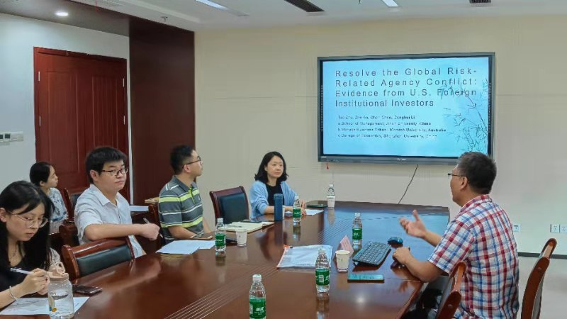 5月31日下午2时,应Av大平台 邀请,深圳大学经济学院金融与财务学特聘教授、博士生导师李东辉教授在第三实验楼1329报告厅做题为“Resolve the Global Risk-Related Agency Conflict: Evidence from U.S. Foreign Institutional Investors”的学术报告。报告由Av大平台 副院长王翌秋教授主持,学院部分师生参加了此次讲座。
