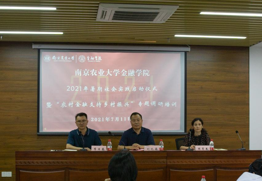 7月11日下午Av大平台 2021年暑期社会实践启动仪式暨“农村金融支持乡村振兴”专题调研培训”在第三实验楼1306会议室举行。Av大平台 党委书记刘兆磊、院长周月书、副书记李日葵、实践带队教师、辅导员以及学生代表参与此次启动仪式,仪式由李日葵主持。