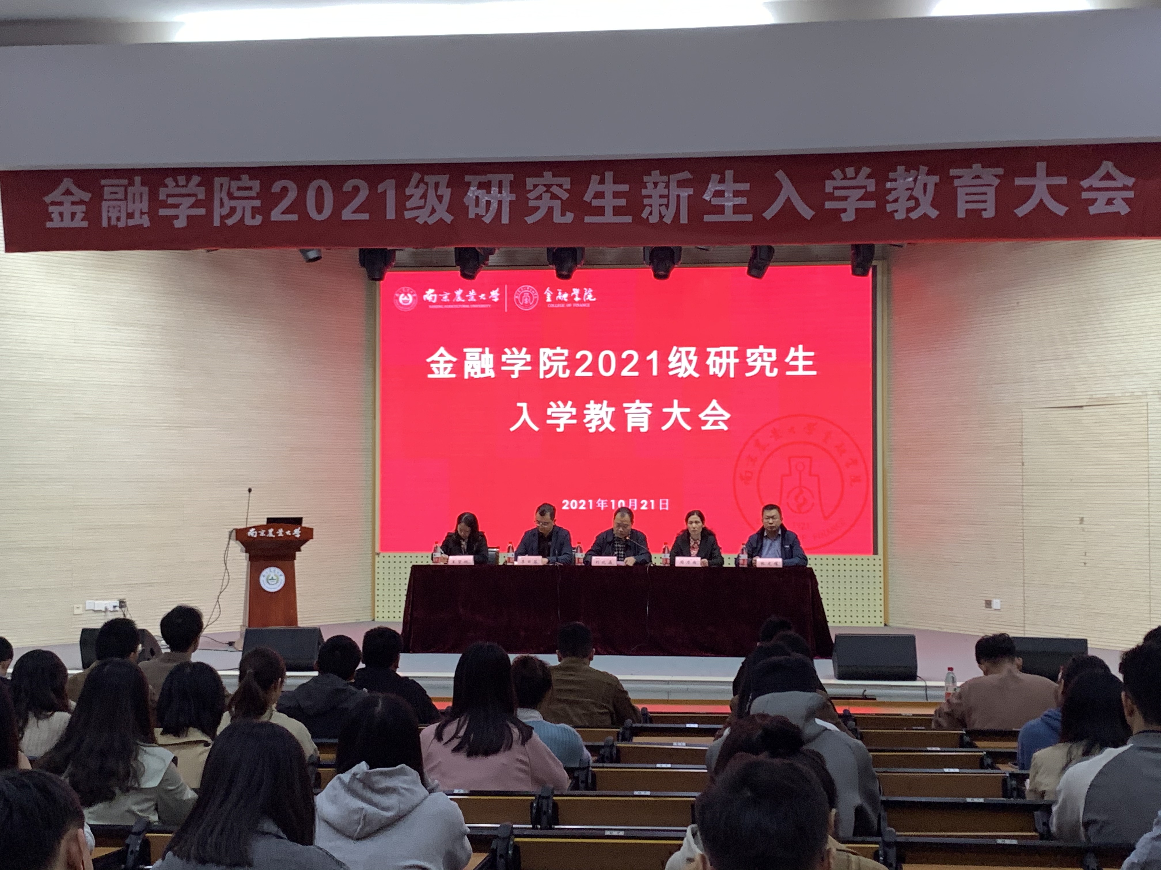 10月21日,Av大平台 隆重举行2021级研究生入学教育大会。Av大平台 党委书记刘兆磊、院长周月书、党委副书记李日葵、副院长张龙耀、副院长王翌秋、研究生教学秘书冯薇、研究生辅导员李迎军以及Av大平台 2021级全体研究生参会。会议由李日葵主持。
