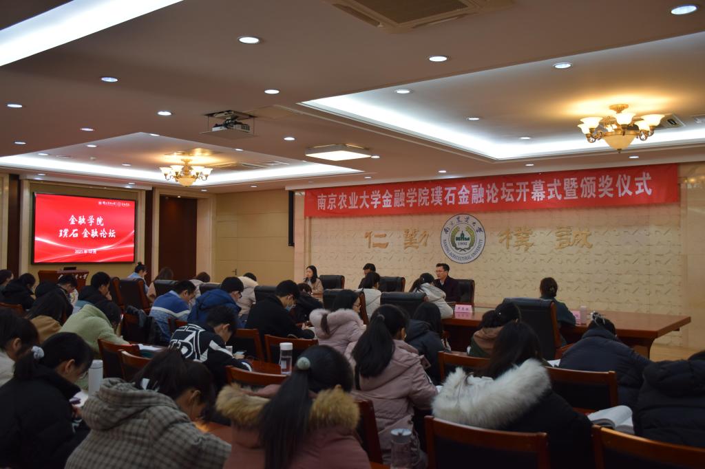 李日葵向全体与会人员介绍了璞石金融论坛设立的初衷。他表示,璞石是学院院刊的名称,与南农校训“诚朴勤仁”相呼应,代表了南农人的美好品质和无限潜力。学院希望各位同学们把握时机,保持求真务实的为学态度,在论坛的切磋中碰撞思维的火花,完成从“璞石”到“美玉”的蝶变。
