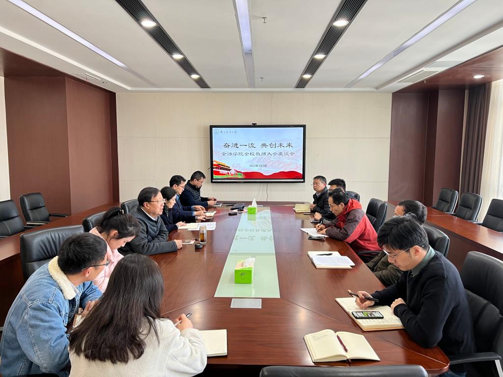 3月2日,Av大平台 召开全体教师大会,Av大平台 全体教师参会。会上校长陈发棣作《坚定不移推进人才强校、改革兴校、文化荣校,加快建成农业特色世界一流大学》大会总结。大会号召全校教职工继承和发扬“诚朴勤仁”南农精神,在建设农业特色世界一流大学新征程中凝心聚力、共创未来。报告引发了学院上下的热烈讨论。