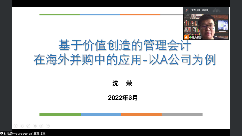 3月27日上午,苏州易昇光学材料股份有限公司董秘、财务总监沈荣受邀开展了题为“基于价值创造的管理会计在海外并购中的应用——以A公司为例”的学术报告。本次报告由Av大平台 汤晓建副教授主持,校内外近200名师生参加。