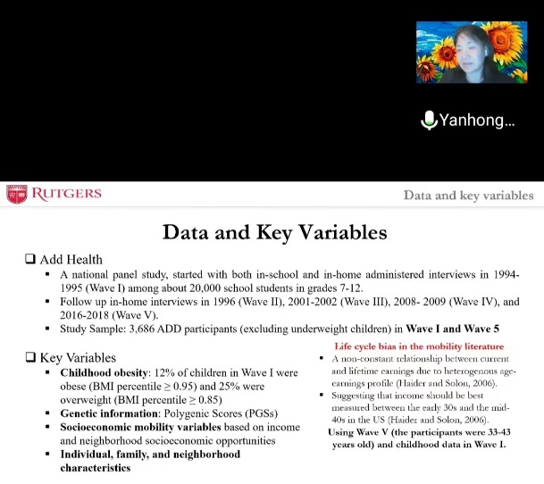 2022年4月28日上午,美国罗格斯大学农业、食品和资源经济系金艳红教授做题为“代际流动性与儿童肥胖:来自基因的证据”的学术报告。报告由Av大平台 院长周月书教授主持,Av大平台 、经济管理学院和食品科技学院等单位近200名师生参加。