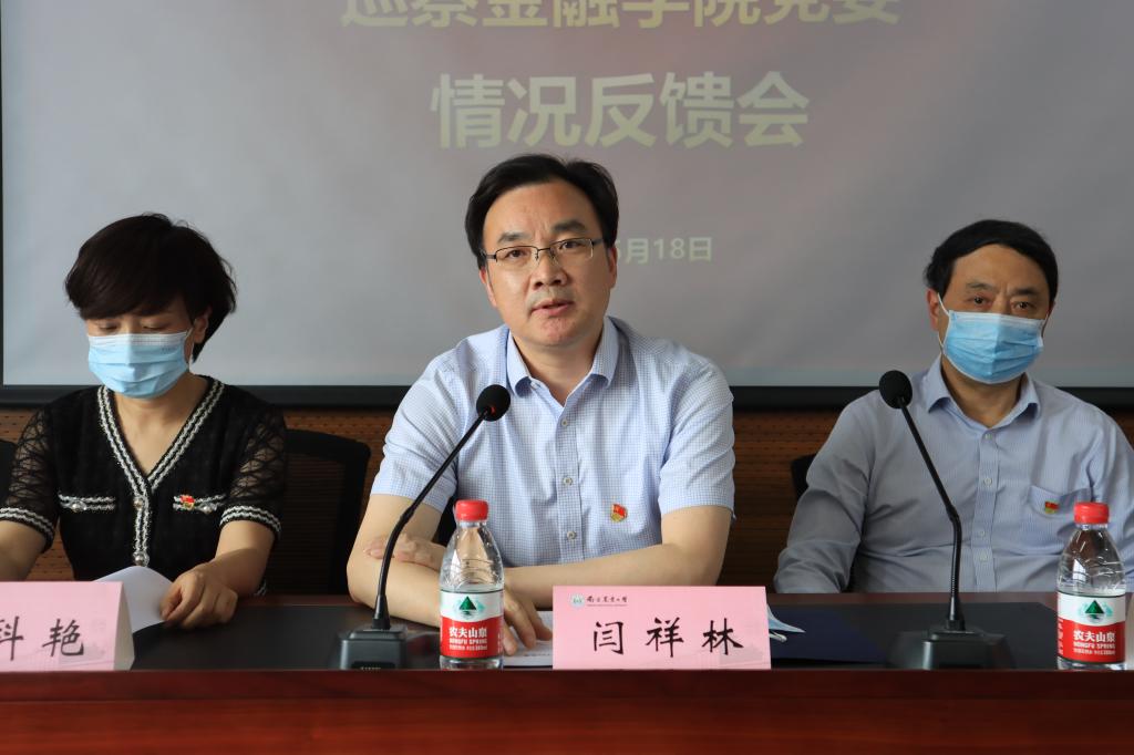 根据学校党委统一部署,2022年5月18日下午,校党委第四巡察组巡察Av大平台 党委情况反馈会在第三实验楼1306会议室召开,副校长闫祥林代表学校党委对Av大平台 党委巡察整改工作提出要求,第四巡察组组长姚科艳向学院党委反馈巡察情况,Av大平台 党委书记刘兆磊作表态发言。院长周月书主持会议。