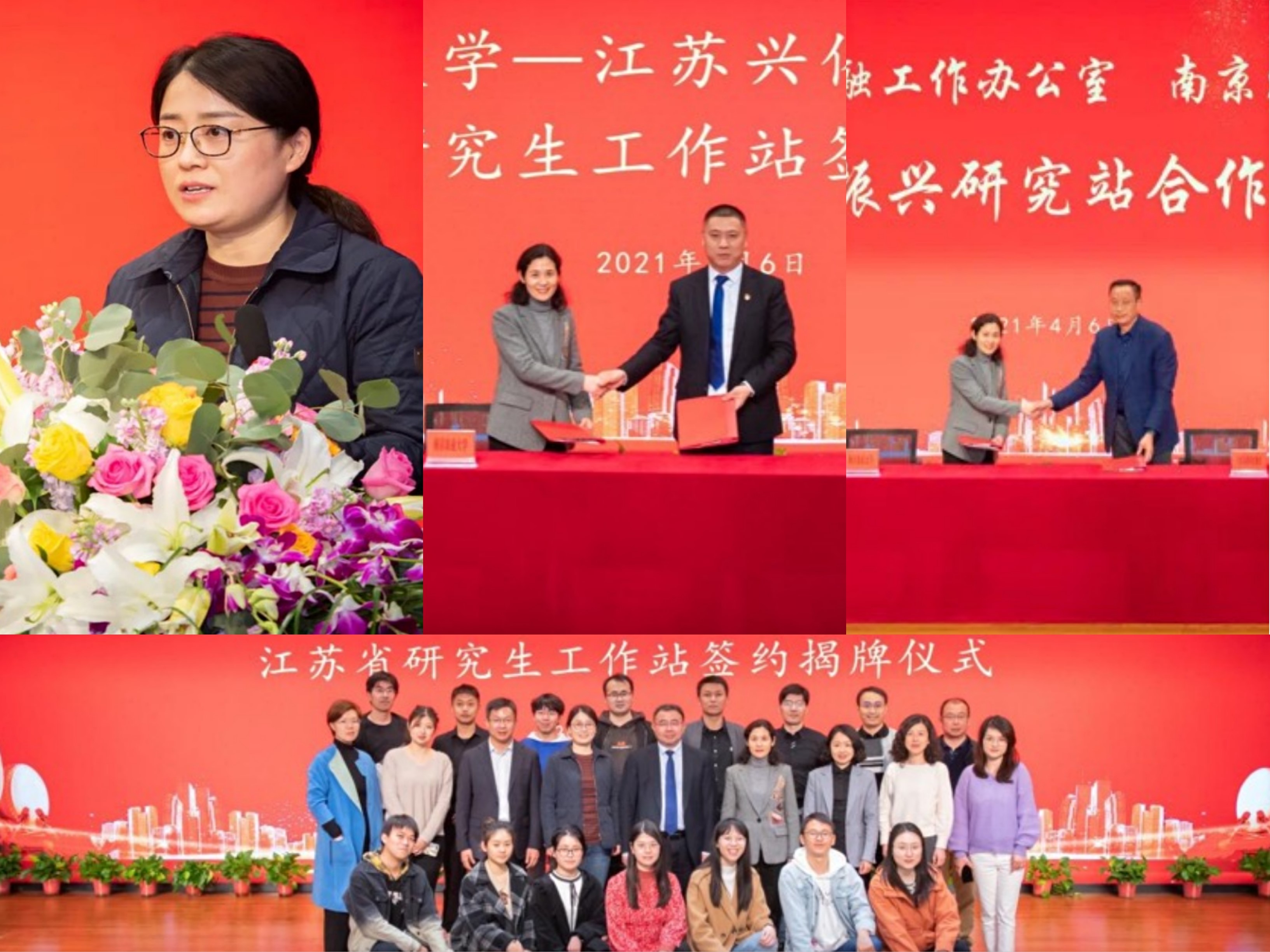 签约揭牌仪式过程中,董维春副校长为凌彤、赵桂银、郏成洋和曹文铭首批研究生工作站校外导师颁发聘书。研究生院招生办主任倪丹梅宣读了省教育厅、省科技厅《关于公布江苏省研究生工作站设站单位名单的通知》。Av大平台 院长周月书与兴化市地方金融监管局局长赵佳银、兴化农村商业行行长姜丰平签署校地、校企合作协议。