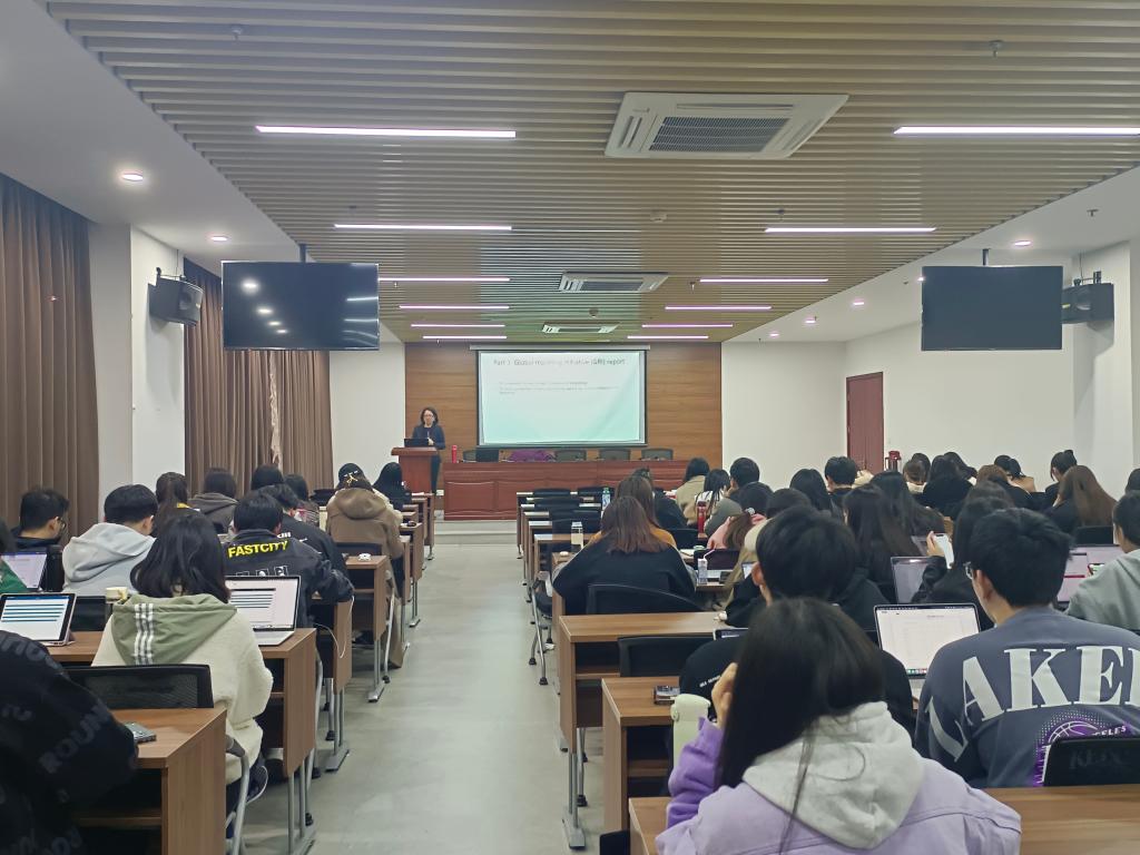 陈之峰老师的报告涵盖了上市公司年报解读、可持续发展报告(GRI)介绍、英文文献阅读和学术论文写作等重要话题,内容丰富详实、主旨突出。在第一天的报告中,陈老师详细地讲述了上市公司年度报告的结构、GRI报告的内容以及发展趋势等前沿信息。陈老师指出,GRI报告应当披露企业对经济、环境和公众可能产生的影响,其目的是帮助利益相关者认识企业现阶段面临的问题从而做出明智的决策。在第二天的报告中,陈老师讲述了预览、略读、跳读和精读等四个高效阅读英文文献的技巧,引导同学们根据自己的写作需求快速选择合适的文献进行有效阅读。陈老师提醒同学们在阅读过程中不仅要学会如何根据文章内容推理其中的隐含信息,还要做到全面客观地评价所阅读的文献,不能以偏概全。在第三天的报告中,陈老师向同学们分享了学术论文写作的思路和技巧,并通过练习题的方式,启发同学们进行深度思考。陈老师指出,在阐述已有学者的研究成果时,要学会用自己的语言将他人的研究成果进行正确地表述,同时在写作时还应注意,不能曲解与改变已有文献的研究结论来佐证自己的论文观点。