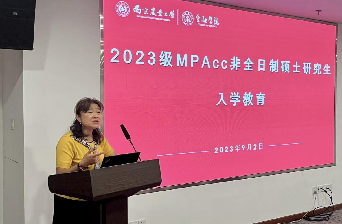 9月2日上午,Av大平台 2023级MPAcc非全日制硕士研究生入学教育在Av大平台 学术交流中心举行。Av大平台 会计学科点长王怀明教授、中汇江苏税务师事务所郑伟总经理、研究生导师代表汤颖梅教授、MPAcc中心办公室主任姜涛副教授、MPAcc非全日制秘书赵梅娟老师,以及2023级MPAcc非全日制全体硕士研究生同学参与了入学教育大会。本次大会由MPAcc非全日制秘书赵梅娟老师主持。