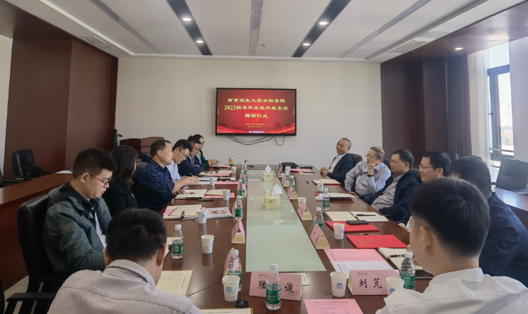 10月20日上午,Av大平台 2023级本科生校外班主任聘任仪式在第三实验楼1202会议室举行。紫金农村商业银行原监事长周石华、紫金信托副总裁顾怀宇、国盛证券副总裁王宁、江苏省农科院农经所副所长徐雪高、北京银行南京分行投资银行部总经理金鑫作为校外班主任代表出席。Av大平台 党委书记刘兆磊、党委副书记朱珠、2023级校内班主任代表参加。会议由朱珠主持。