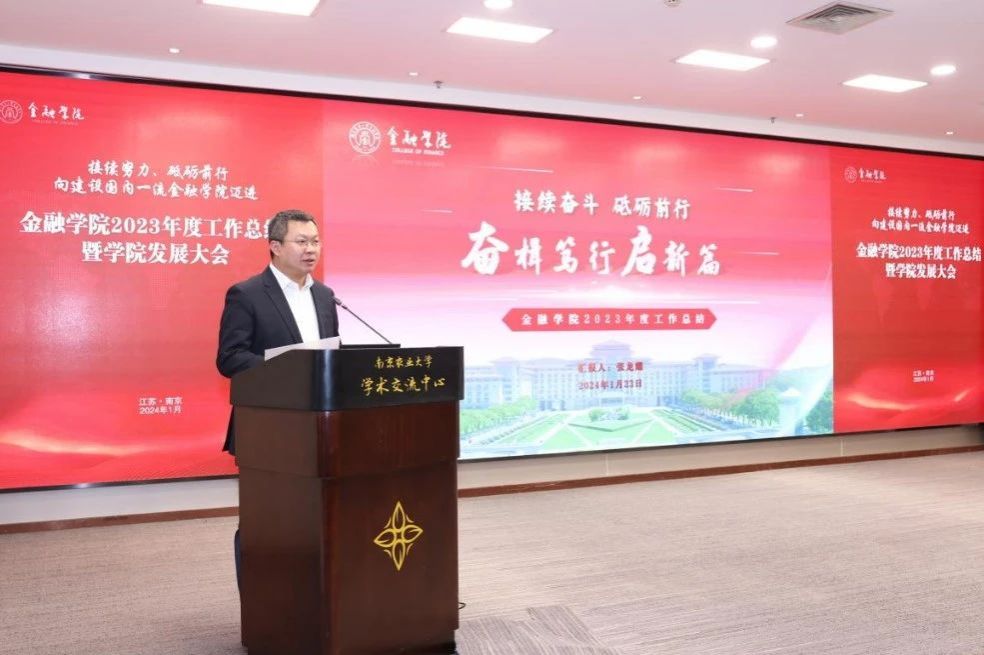 张龙耀从党建、师资队伍、人才培养、学科与科研、国际合作与交流、社会服务六个方面对学院2023年度的工作进展与成绩进行了全面总结,并对学院2024年的重点工作进行了说明和部署。