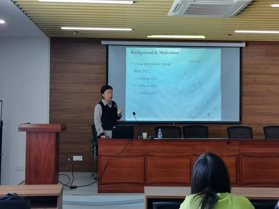 4月1日上午,新西兰梅西大学经济与Av大平台 教授迟晶受邀为Av大平台做题为《Digital finance and birth rates: Evidence from China》的学术报告。报告由Av大平台 于引老师主持,学院近百名师生参加。