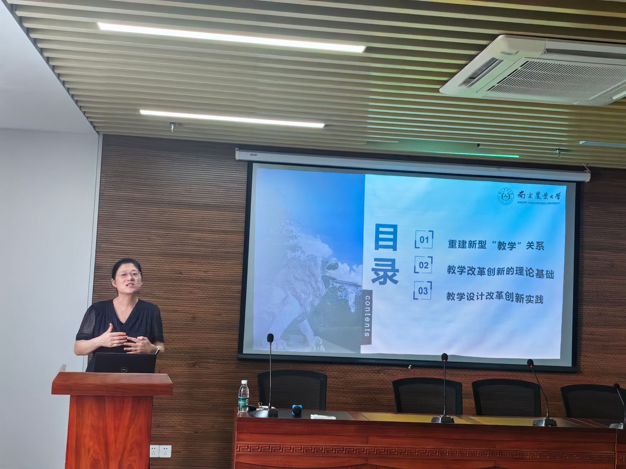 紧接着,教务处副处长丁晓蕾为与会人员带来了精彩的课程建设专题报告。她围绕“重建新型‘教学’关系、教学改革创新的理论基础及教学设计改革创新实践”等核心议题,深入浅出地阐述了当前教育教学改革的新趋势、新要求,并结合实际案例介绍了教学设计改革创新的实践路径。她强调,在新时代背景下,必须紧跟时代步伐,不断探索适应未来社会需求的教学模式,以培养学生的创新能力和实践能力为核心,重构师生关系,提升教学质量。
