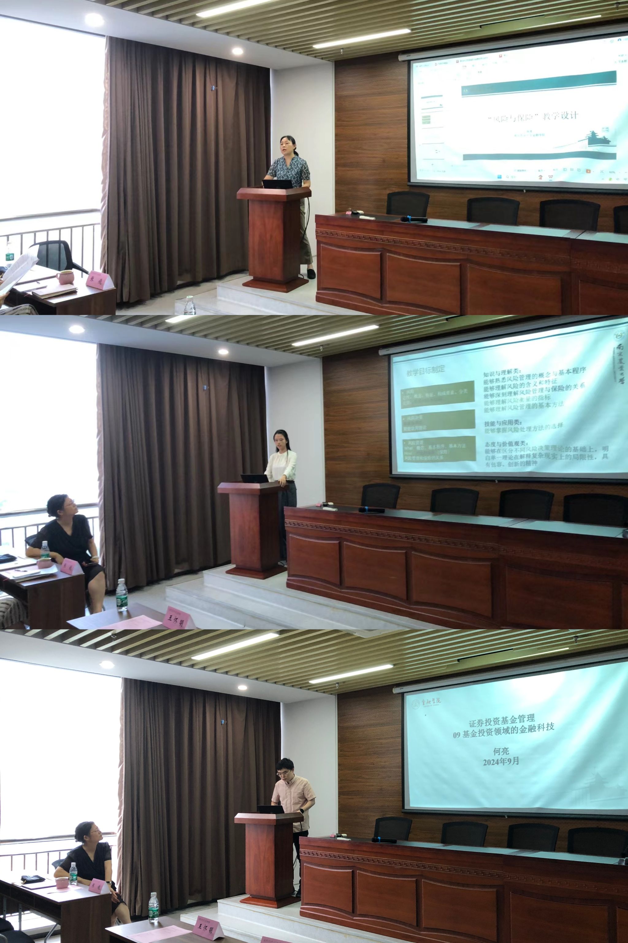 在分享环节,何亮副教授和唐溧老师分别就基金投资领域的金融科技、风险与保险等主题进行了课程设计分享。他们结合各自的研究领域和教学经验,提出了许多新颖的教学思路和方法,为学院课程体系的优化和完善提供了宝贵的建议。此外,姜涛副教授也结合自己多年的教学实践,分享了他在教学过程中的心得体会和成功经验,为在座教师提供了宝贵的参考与启示。