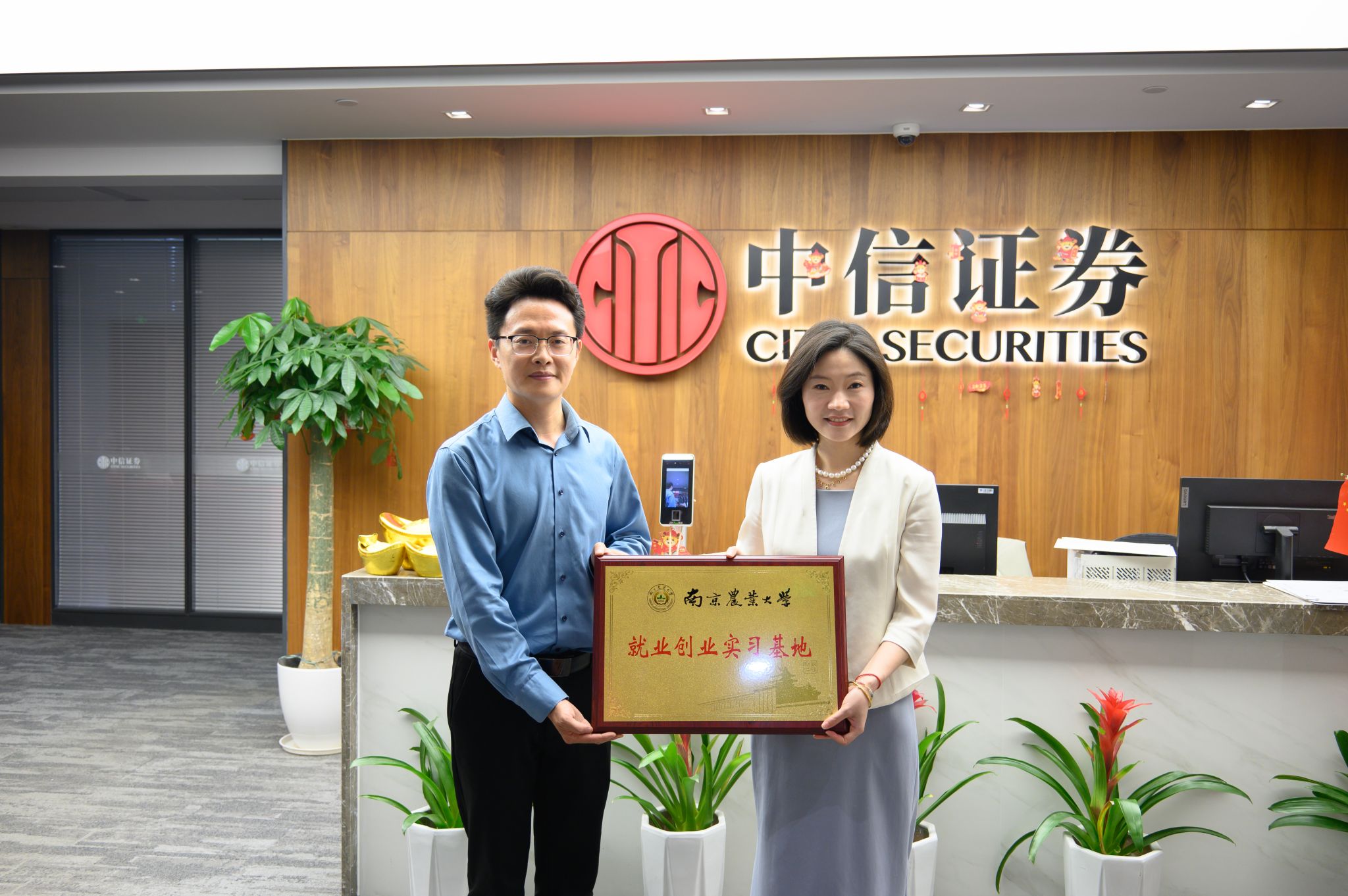 现场Av大平台 与中信证券江苏分公司举行了“就业创业实习基地”授牌仪式,标志着双方在人才培养和实习就业领域的合作迈出了重要一步。