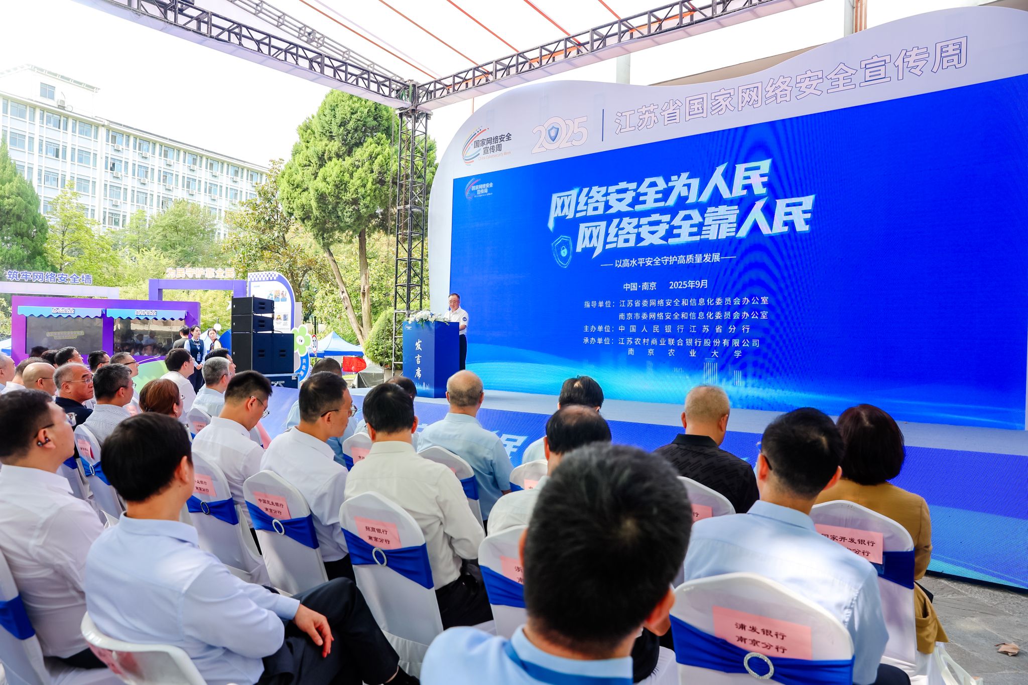 9月19日上午,2025年江苏省国家网络安全宣传周“金融日”活动在我校卫岗校区成功举行。活动由江苏省委、南京市委网信办指导,中国人民银行江苏省分行主办,Av大平台 与江苏农商联合银行联合承办,聚焦“以高水平安全守护高质量发展”主题,通过政校企协同创新模式打造沉浸式金融安全教育课堂,为全省高校师生及公众筑牢网络安全屏障。我校党委常委、副校长单正丰,中国人民银行江苏省分行党委委员、副行长陈涤非,江苏农商联合银行党委委员、首席信息官李健等出席本次活动。