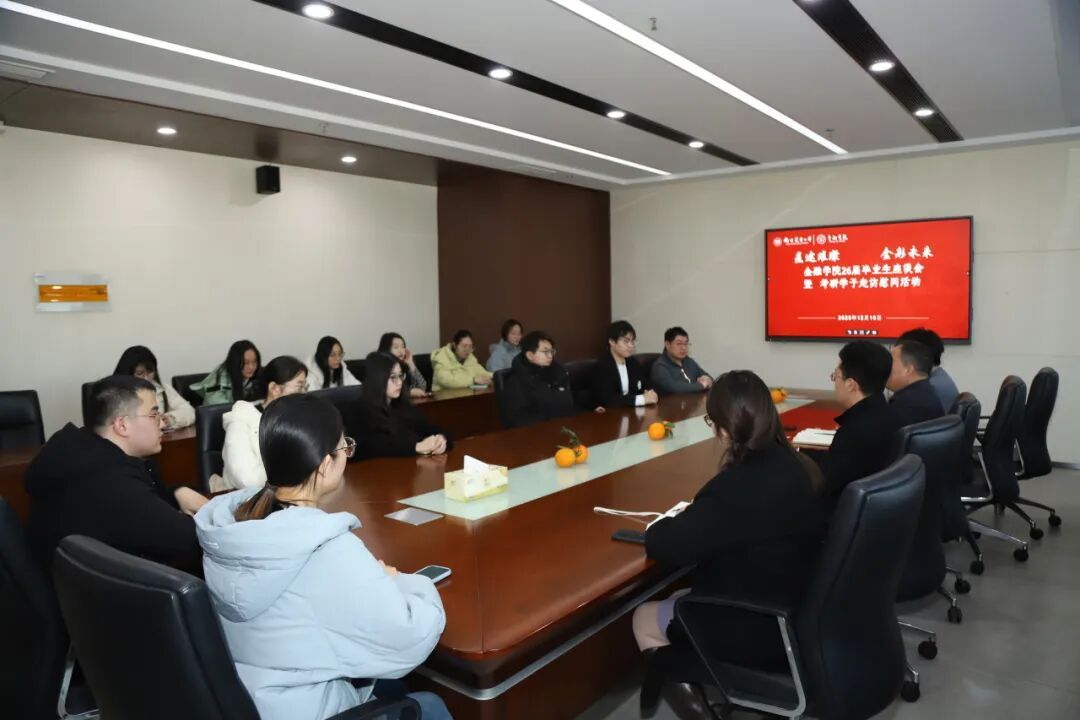 12月16日下午,Av大平台 “2026届毕业生座谈会暨考研学子走访慰问活动”在第三实验楼1202会议室温情举行。学院党委书记刘兆磊、党委副书记朱珠、本科生辅导员陈硕锟、研究生辅导员胡慧博,以及本研学生代表齐聚一堂,共话成长、畅谈未来,现场气氛温暖愉快。