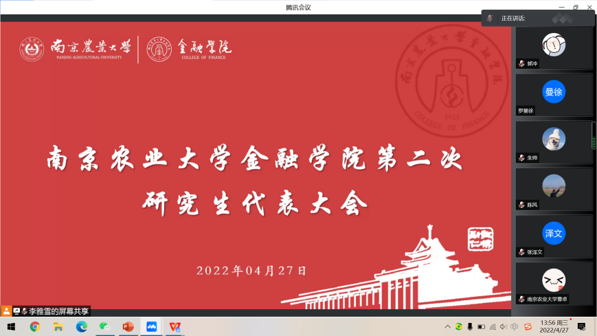 大会选举许珂铭、葛云杰、王雨彤、高秦昌、杨星5名同学作为学院研究生代表,参加Av大平台 第九次研究生代表大会,选举李雅雪、何子轩、刘一博3名同学为Av大平台 第九届研究生会主席团。