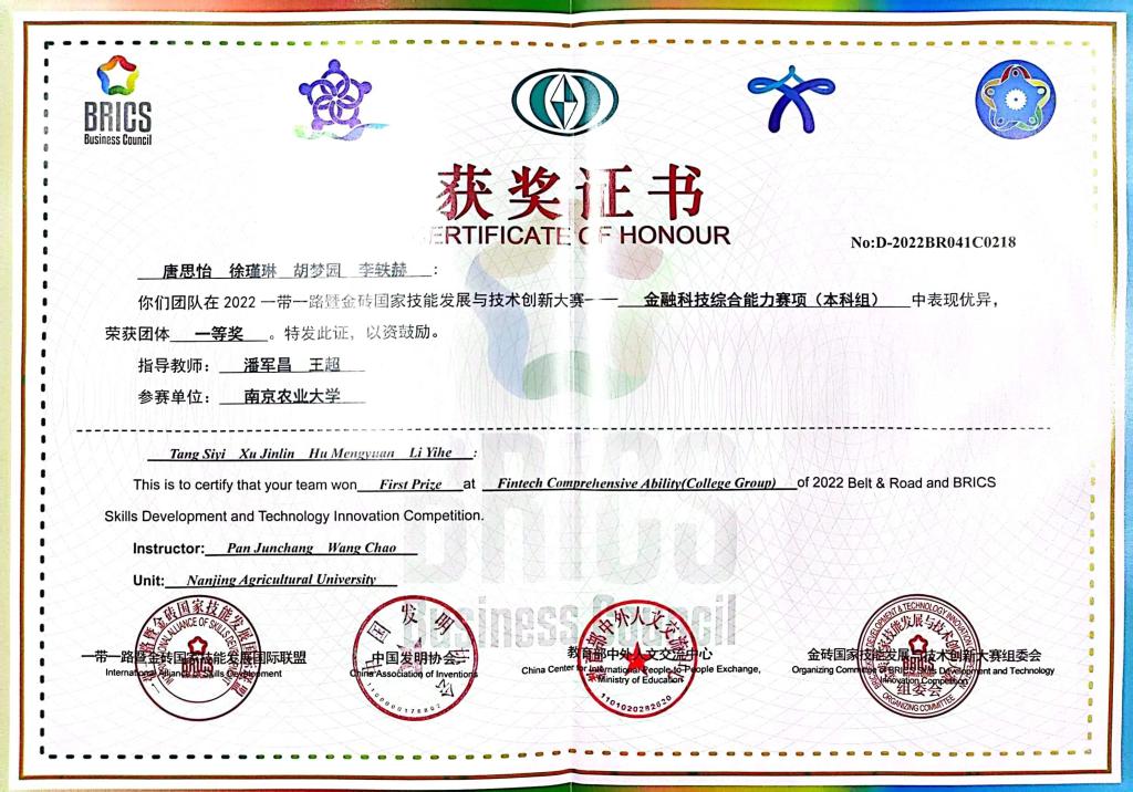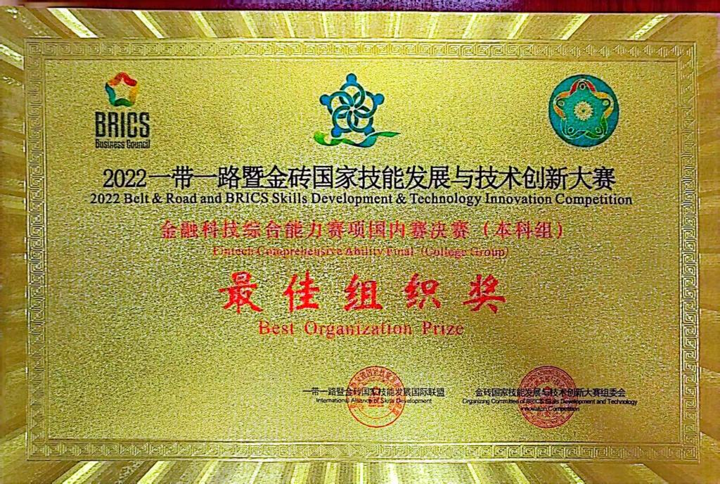 近日,2022一带一路暨金砖国家技能发展与技术创新大赛结果正式公布,Av大平台团队荣获金融科技综合能力赛项(本科组)团体一等奖,学院荣获最佳组织奖。