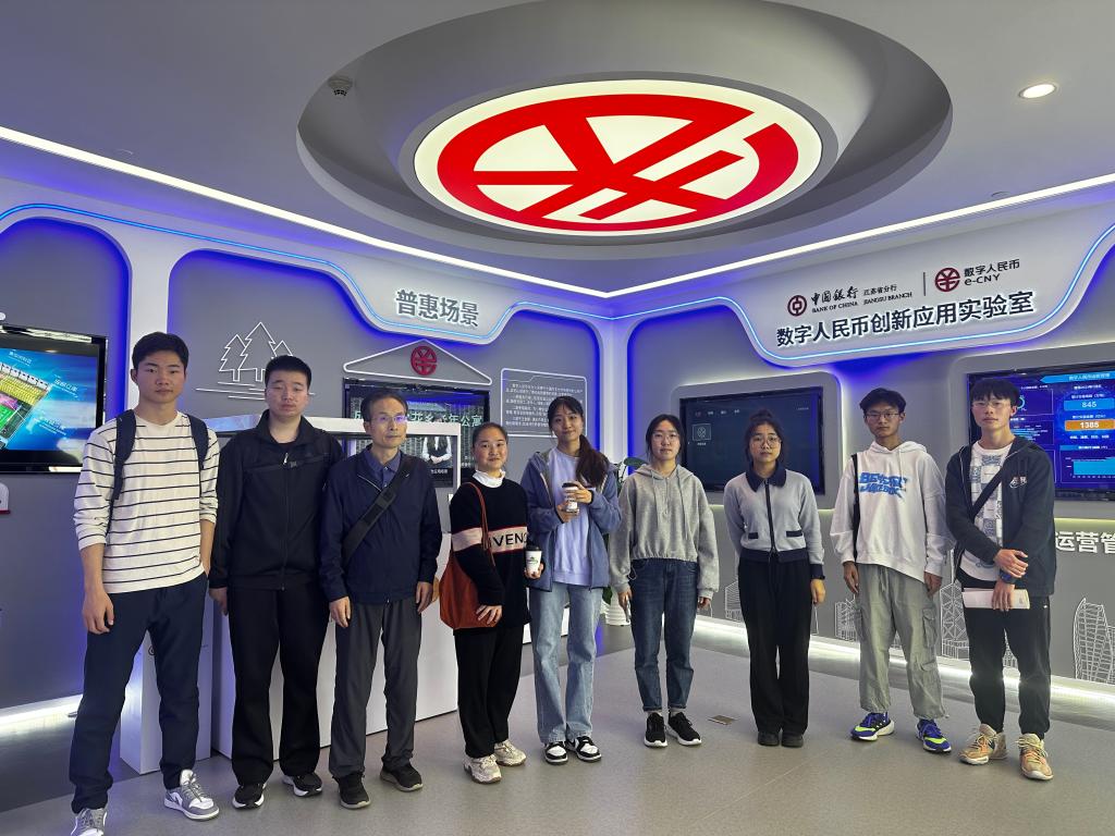 3月9日下午,Av大平台 组织师生前往中国银行江苏省分行数字人民币创新应用实验室参观学习,并就数字人民币相关问题进行座谈交流。中国银行南京分行个人数字金融部副总经理姚赟、主办徐明、金融系教师潘军昌、辅导员徐冰慧及学生代表参加了此次活动。