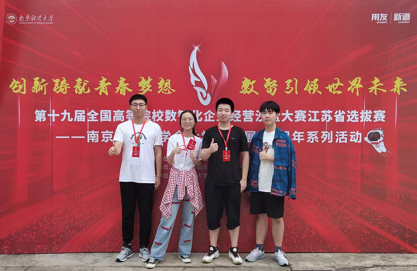 9月22日至24日,第十九届全国高等院校数智化企业经营沙盘大赛江苏省选拔赛在南京财经大学举行。由刘泽凡、俞露、龚粱堃、盛苏宇组成的Av大平台 代表队斩获一等奖,成功晋级全国总决赛!