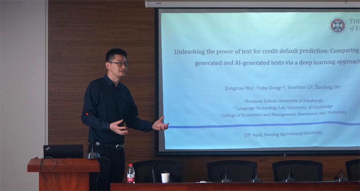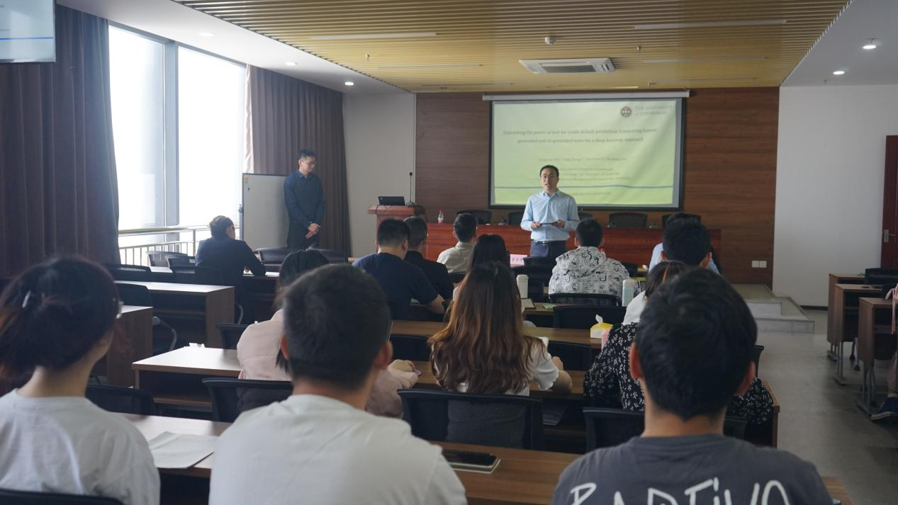 4月19日上午,英国爱丁堡大学副教授、博士生导师董轶哲受邀为Av大平台做题为“Unleashing the power of text for credit default prediction: Comparing human-generated and AI-generated texts via a deep learning approach”的学术报告。报告由金融系主任彭澎副教授主持,学院近百名师生参加。
