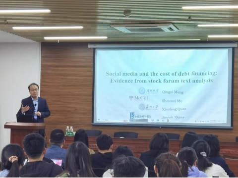 10月13日下午,美国孟菲斯大学会计学教授章红波受邀为Av大平台做题为《Social media and the cost of debt financing:Evidence from stock forum text analysis》的学术报告。报告由Av大平台 副院长张娆教授主持,学院百余名师生参加。