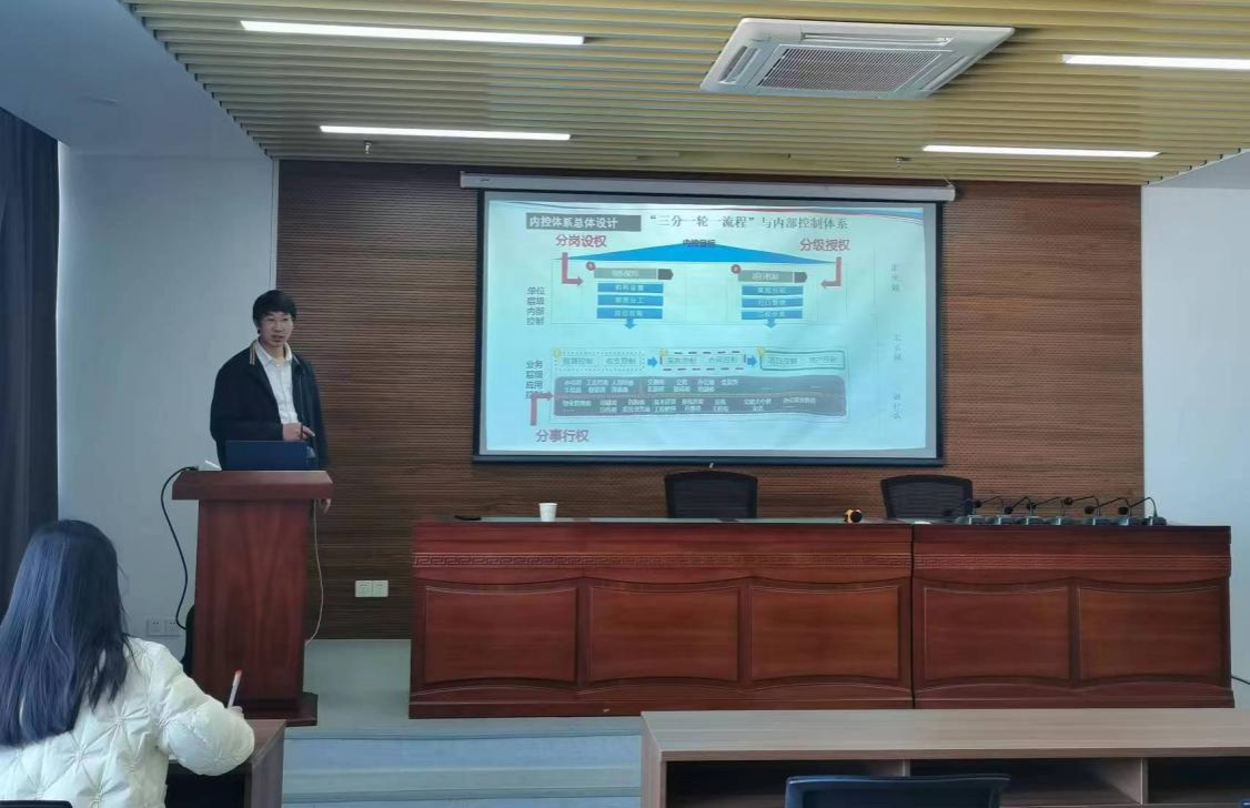 吴雅倩老师对王政力副总裁受邀开展学术报告表示热烈欢迎。王政力,北京中科江南信息技术股份有限公司副总裁、高级研究员,中国财政科学研究院博士后,曾为中宣部、交通运输部、国家食品药品监督管理总局等单位提供内控咨询(培训)及数字化落地工作。