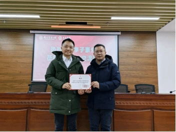 讲座现场,Av大平台 聘请李子豪先生为校外导师,Av大平台 院长张龙耀教授颁发了聘书。