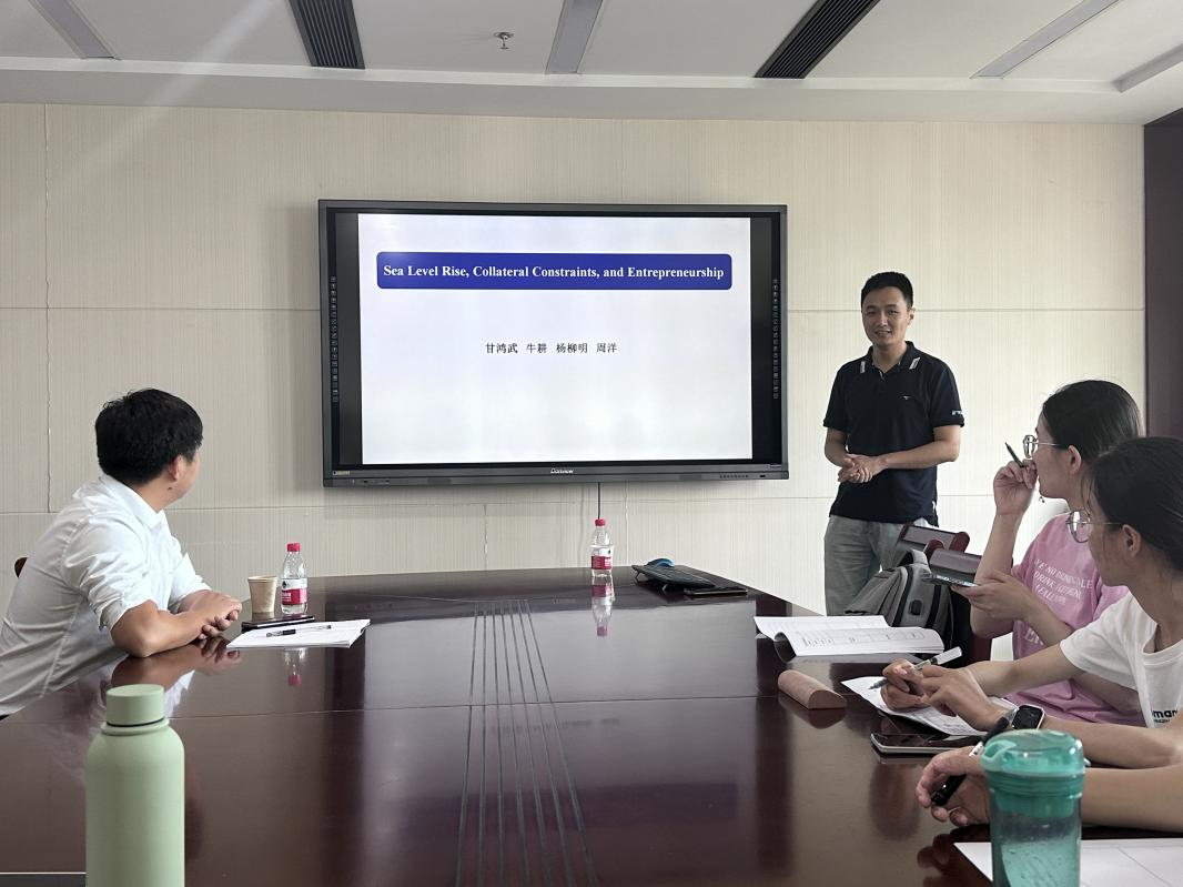 5月22日上午,武汉大学经济与管理学院副教授周洋受邀为Av大平台做题为《海平面上升、抵押品限制和创业》的学术报告。报告由Av大平台 吴雨教授主持,学院30余名师生参加。
