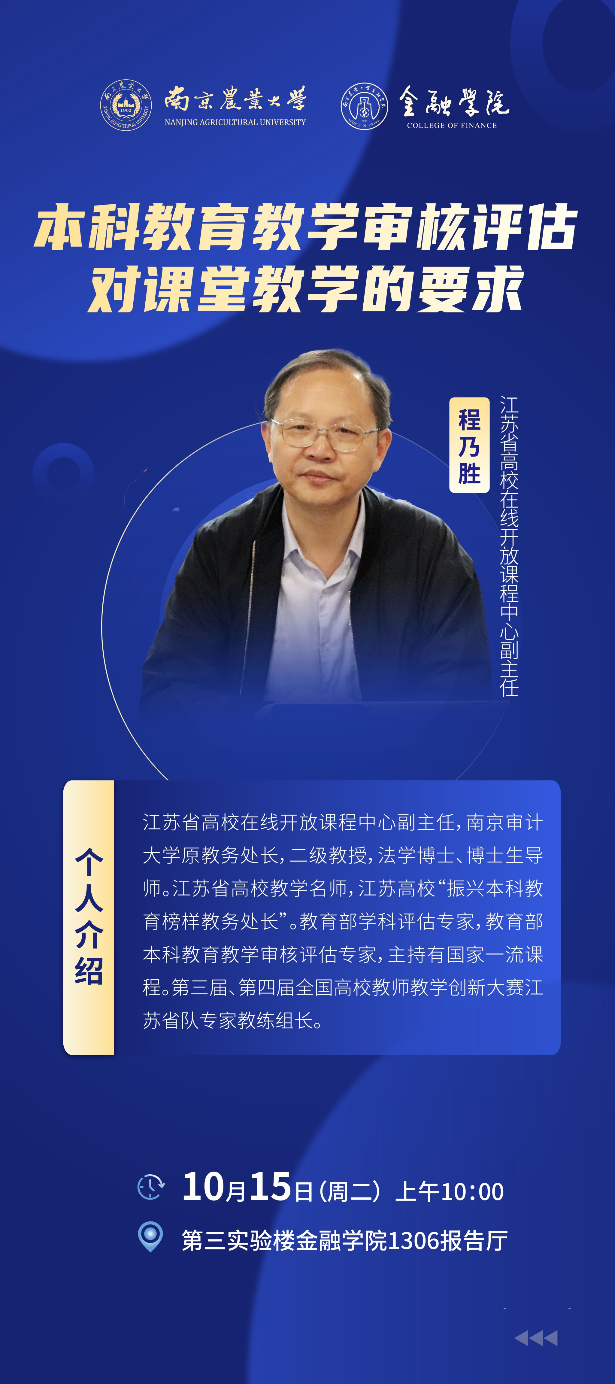 讲座预告(10.15)丨本科教育教学审核评估对课堂教学的要求