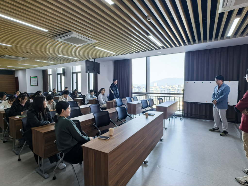 在互动环节,现场师生围绕论文写作、论文投稿前需要注意的事项和学术会议参与等话题与钱博士展开热烈交流。钱鹏展博士结合自身经历耐心解答,现场学术氛围浓厚,反响热烈。