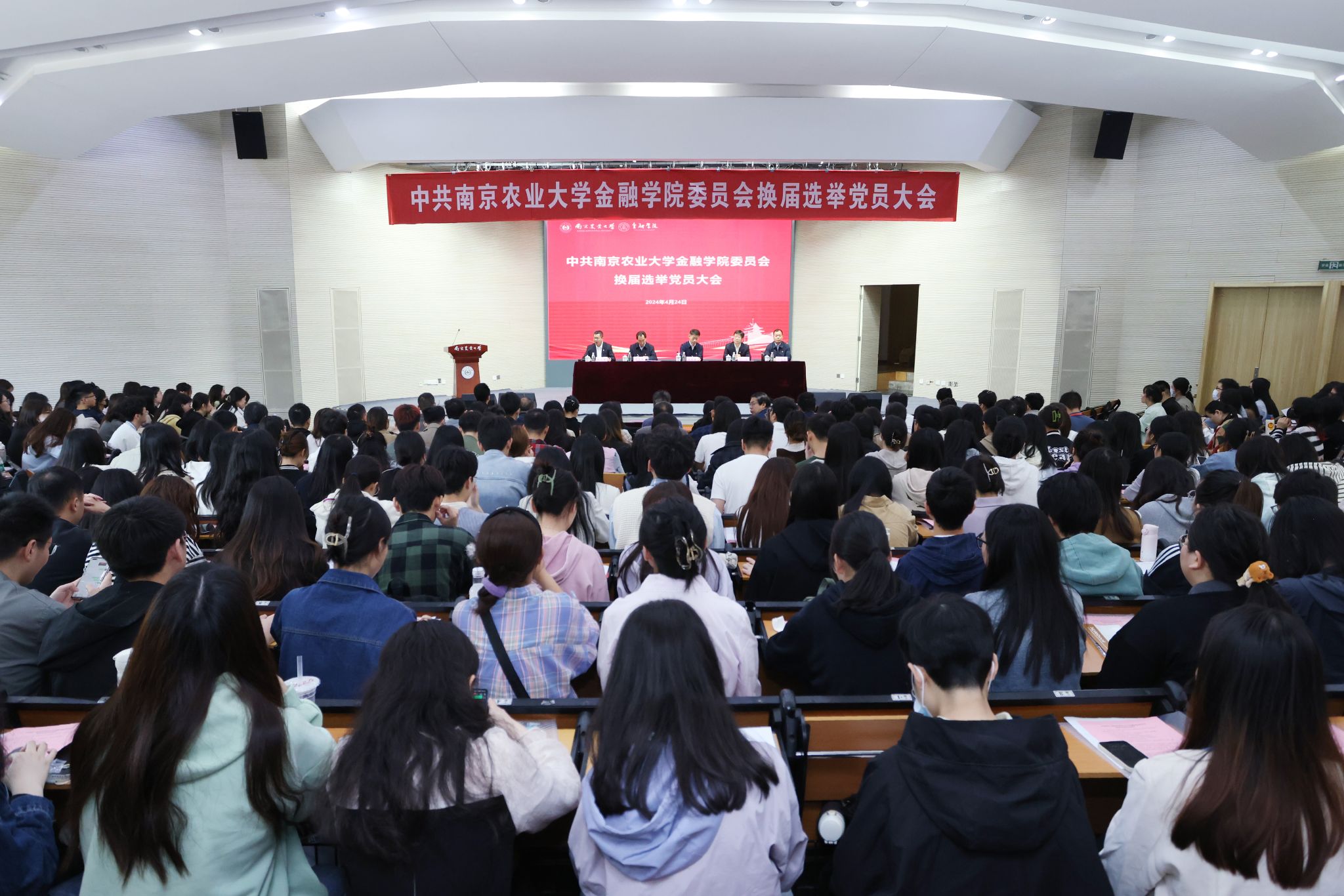 4月24日上午,中共Av大平台 委员会换届选举党员大会在大学生活动中心隆重举行。校党委书记王春春,校党委组织部部长刘亮,校纪委副书记李昌新出席会议。Av大平台 党委书记刘兆磊,院长张龙耀,副书记朱珠,副院长张娆及全体师生党员参加会议。会议由张龙耀主持。