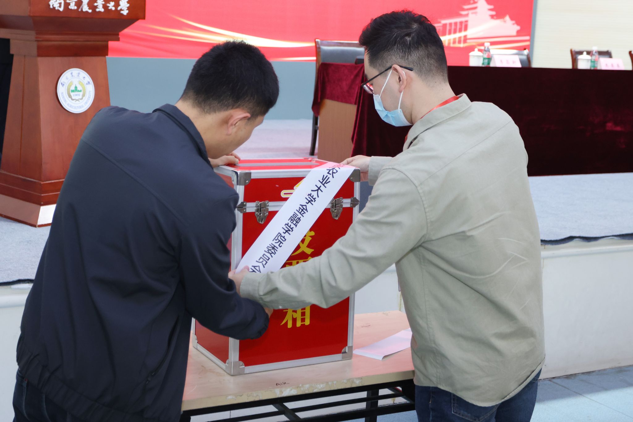 刘亮宣读《关于同意Av大平台 党委委员和书记、副书记候选人预备人选组成方案的批复》。工作人员宣读《大会选举办法(草案)》,大会经过举手表决全体通过选举办法、新一届党委候选人人选、监票人、计票人等。
